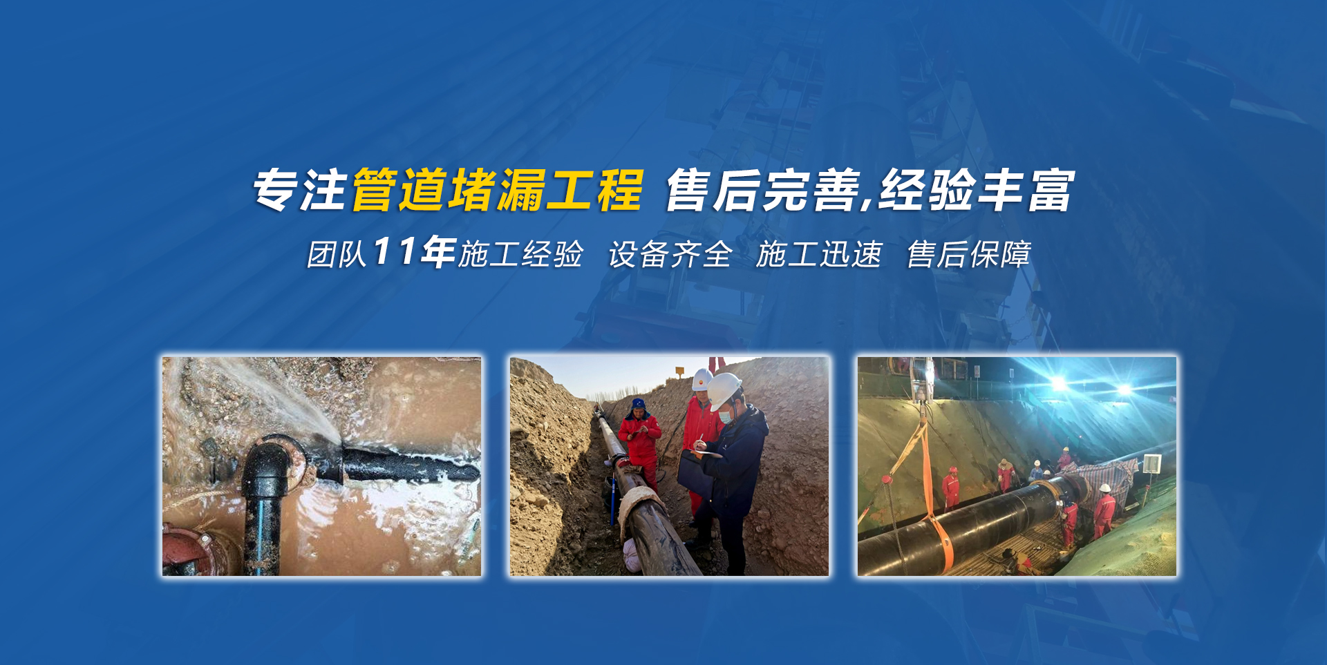 公司**從事管道維修擁有豐富的工程經驗; 經驗豐富的**團隊,以滿足客戶**率的施工需求; 同時擁有多種型號的切割裝備,能夠滿足各種領域的用水需求。